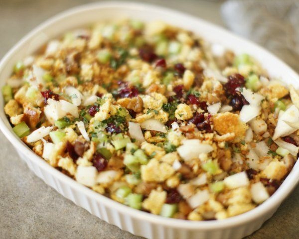 Every stuffing recipe is slightly different, though. Some use giblets and others don't. Some add fruit like apples or pears, and some add sausage. And, some stuffing recipes even replace the bread with another starch, like rice. If you're looking for a good stuffing recipe with a little twist, try this cranberry stuffing recipe; it calls for pre-made stuffing but you could easily use your favorite homemade stuffing instead. It also has plenty of natural sweetness thanks to the apples and dried cranberries.
