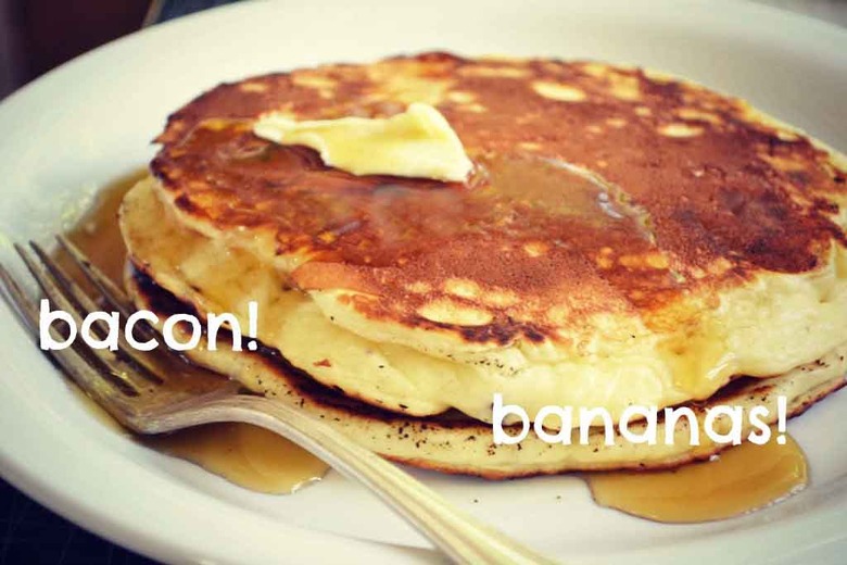We eat pancakes so often that we have to mix it up on weekends. On Saturday mornings I like to try new recipes that are fun, healthy, and will cover Sunday morning, too, because Mama doesn't cook Sunday morning. In this post I'm going to cover some of our more recent, favorite, new pancake recipes. A couple may sound a little crazy (banana and bacon?), but you will be shocked at how good they actually taste. (By the way, I usually sub extra-lean turkey bacon to keep it healthy.) The train pancakes are a hit with my boy, and the Meyer lemon pancakes are a huge hit with my daughter. But the watermelon pancakes are hands down the biggest hit in our house right now. Find out how to make watermelon pancakes and other fun pancake recipes below.