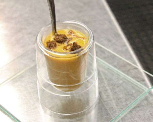- Beer and Cheddar cheese soup with smoked bacon, jalapeño, and pumpernickle crouton