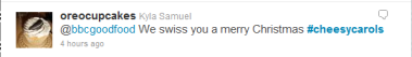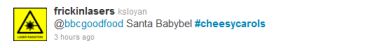 Nothing gets people tweeting like an addictive hashtag game, and this morning the folks over at BBC Good Food came up with one that's both clever and seasonal. The concept is simple; try your best to seamlessly incorporate the name of a cheese into the name of a Christmas carol, and add the hashtag #cheesycarols at the end of your tweet. The responses have been coming in all day, so we rounded up our top 10 favorites (beginning with the original) for your viewing pleasure. We threw in a few of our own as well.