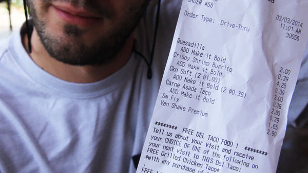 Not one to take the state of our fast food affairs lightly, we ventured to a local Del Taco to seek the truth. Upon arrival at the drive-thru, we asked the gentleman working the speaker box about this curious Go Bold rumor. He swiftly confirmed its existence and at that point, all hell broke loose. We promptly went, er, BOLD on the following: a quesadilla, a crispy shrimp burrito, three chicken soft tacos, a Double Del Cheeseburger, and a vanilla shake.