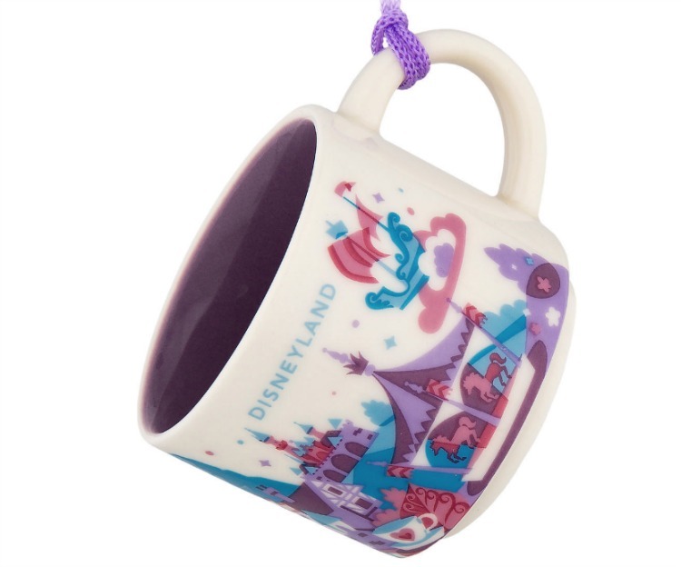 And if you don't drink coffee, or even cocoa, four of the mugs also come in smaller versions to be hung on your Christmas tree or otherwise displayed as ornaments. Especially breathtaking is the Disneyland mug, done up in shades of purple and blue and featuring the dazzling Fantasyland attractions.