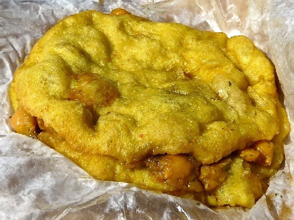 ‘Doubles’ are a vegetarian street food from Trinidad that consists of two pieces of fried, usually golden, flat, palm-sized pieces of quick bread, served with chickpea curry, called channa. Doubles’ likely originated as a Punjabi dish called chole bhatura, brought to Trinidad between 1845 and 1917 by Indian contract laborers imported to work on plantations after slaves were emancipated in 1834. Today, Doubles are food for the everyman, both vendor and customer. They’re quick and cheap to buy (averaging $3.50 in Port-of-Spain and $1-2 in New York) and relatively inexpensive to make. Anyone can be a Doubles vendor; one of the reasons recipes, and serving-style can be contentious—depending on the vendor, they can resemble a soft-taco, a sandwich, or a mini-burrito.There are four condiments which usually accompany Doubles: a hot pepper sauce made from Scotch Bonnet peppers, shado beni chutney (shado beni being a leafy herb which grows in Trinidad also known as culentro, Japanese saw leaf or Mexican coriander), tamarind sauce, and kuchela (a green mango chutney). All four can be found in most East Indian grocers or delis. You can make your own passable substitutes if you have trouble finding the prepackaged versions. For instance, for the hot sauce: blend Scotch Bonnet peppers with vinegar, salt and pepper to taste. For shado beni chutney, blend: 10 shado beni leaves, one garlic clove, ¼ Scotch Bonnet pepper, ¼ cup water and salt to taste (use cilantro if shado beni is unavailable).Some argue for the use of cumin and curry in the bara dough, others argue against it. Similarly some cooks contend that split pea flour is essential to an authentic “skin.” To make your own Doubles at home, follow the instructions below, adapted from several recipes under the guidance of veteran doubles-maker, Ms. Uclan Fermin, of the famous Fermin Doubles from Holy Cross College, Arima in Trinidad.