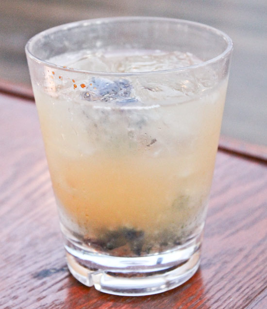 This summer fruit drink is made with blueberries, Pierre Ferrand cognac, honey, The King's Ginger liqueur, and lemon juice.
