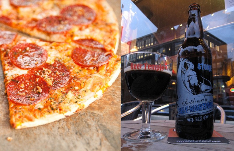 Pepperoni Pizza with Stone Sublimely Black IPA