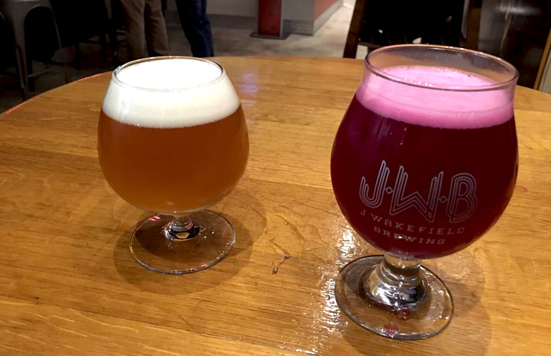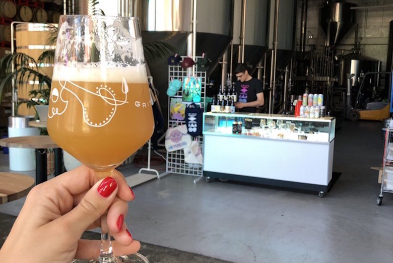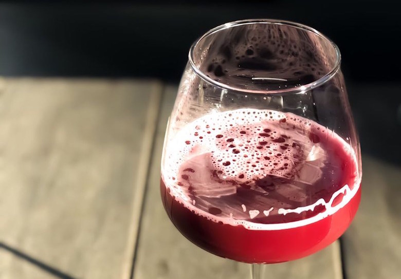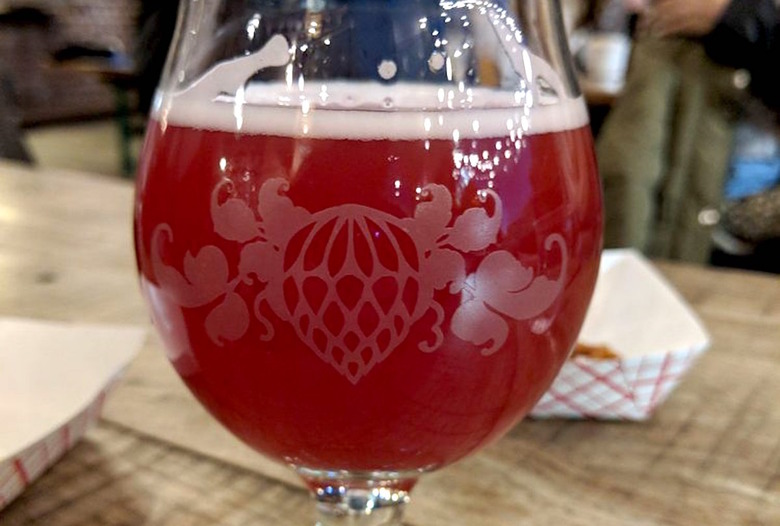 Never Never Again Again double raspberry gose is the older, cooler, leather jacket-wearing brother to Veil's original Never Again. We kid you not; it's described as being "literally insane." Brewers used more than half a ton of raspberry purée in this recipe, giving it a smoothie-esque texture. That makes it healthy, right? Unlike most goses, this pretty pink drink won't make you pucker your lips. It's all smooth sailing with this one, fellers.