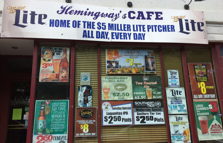 Hemingway's Café offers $2 drafts from 9 a.m. to midnight, but its main claim to fame is its food selection, served from 9 p.m. to midnight for half-price. Hemingway's also offers karaoke every Wednesday night, and if you're feeling stage fright, try a couple of their Mason jar cocktails or order one of their special shot pitchers, and you'll be singing your heart out in no time.