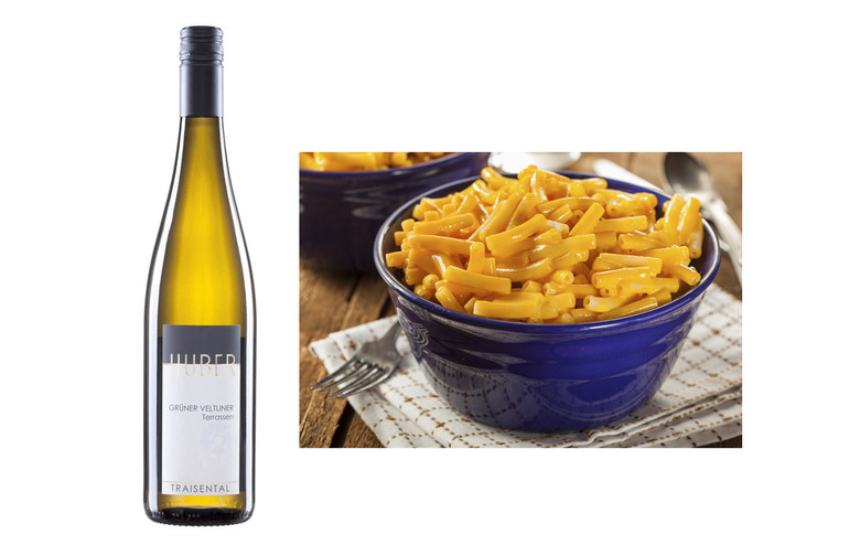 Whether your mac and cheese comes in a box and is made with powdered cheese, is baked with Velveeta, or is a blend of gourmet Cheddar and other cheeses, this crowd favorite is an ultimate comfort food. It's creamy, warm, and soothing, and is delicious with fried chicken and other comfort foods. You could pair it with the Gosset we recommend elsewhere and it will be tasty, but if you prefer a still wine, the Huber Grüner Veltliner hits the right notes for a near-perfect pairing. Like a dash of freshly ground black pepper, the spicy hits of watercress and dandelion in the wine help your palate cut a path through the richness of the pasta and cheese, while barely ripe pear and apple notes, along with limestone minerality, make this racy, acid-laced wine refreshing and thirst-quenching.
