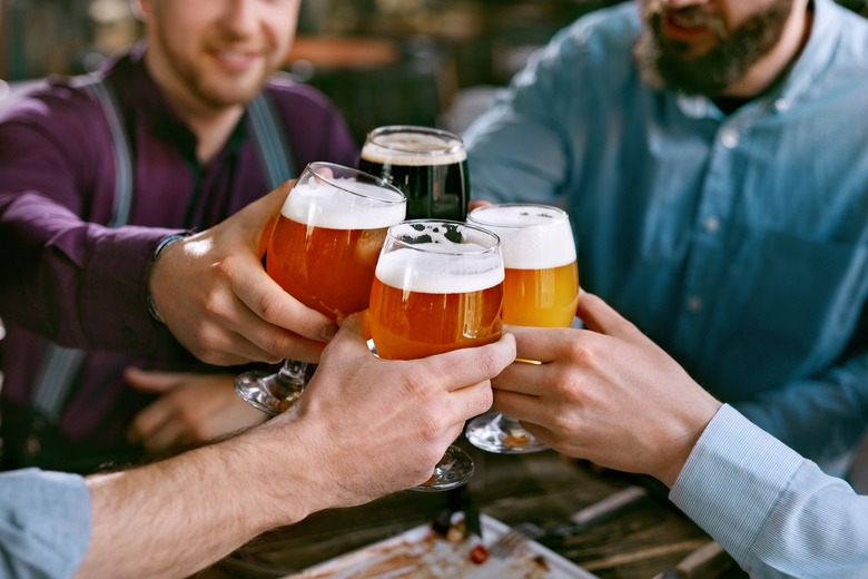 The perfect beer pour seems like something you'll only find at the best bars in America, but you can do this at home too. In order to do so, make sure you have a clean glass. Then, hold that glass at a 45-degree angle and pour your beer, aiming for the middle of the slope. Don't be afraid to pour hard and fast and get some air in the pour. Then, halfway through, tilt your glass to a 90-degree angle and continue to pour, aiming for the center. This should result in a perfect pint with a head of about 1 to 1 1/2 inches. And once you know how to pick the right beer and pour it, expand your boozy knowledge by learning how to curate the perfect bar cart.