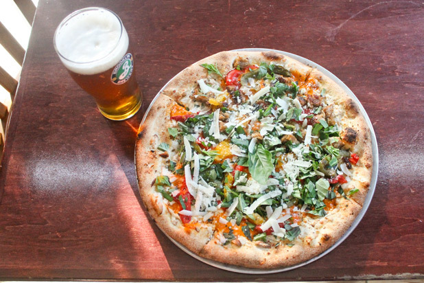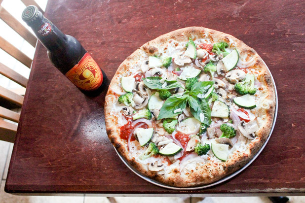 And for another take on the classic veggie pizza, the Vegetable Delight pizza is a mix of zucchini, broccoli, red onion, fresh roasted peppers, plum tomatoes, and mozzarella cheese. For a vegetable-filled 'za, picked the Magic Hat #9 brew, the "not quite" pale ale that's bursting with hints of peach, apricot, and citrus. The complementary flavor profiles of the beer and pizza, not to mention the similar densities (at 5.1 percent ABV, #9 is on the lighter side) make it a match made in food heaven.