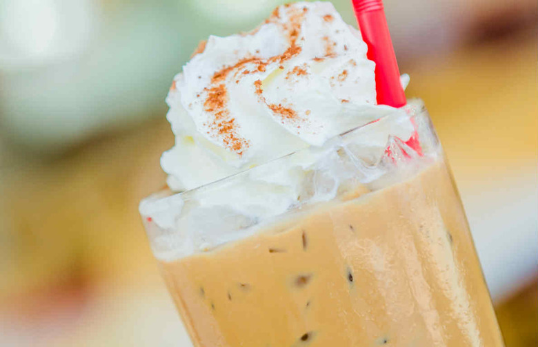A blender, milk, coffee, and ice are all you need to create the perfect frothy Frappuccino at home. The key here is making sure all the elements — including the coffee — are cold, or at least room temperature. Otherwise, the ice will melt and you will just have watered-down lukewarm coffee.