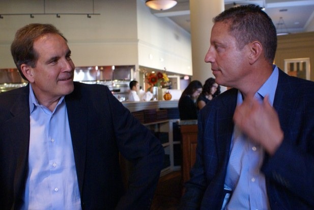 No, not his broadcast partner —– ex-NFL quarterback Phil Sims —– but his partner-in-wine, importer Peter Deutsch (right). I have come to Foxborough to talk with the two men for an hour or so and drink their just-released chardonnay and cabernet sauvignon. It may surprise some to realize that for over more than a decade, sportscaster Nantz has dreamed of establishing a serious California icon wine brand —– but not as a vanity project. He spent years researching everything from growing grapes to distributing wine made from those grapes. Then Jim met Peter.