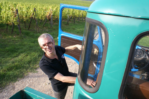 We caught up with super-busy Etienne Hugel a week before his second wedding and in the middle of harvest, yet the energetic winegrower insisted we jump into his truck for a tour of the Hugel vineyards. Hugel is very bullish on pinot noir in Alsace, but gets less-excited about the area's crémant — he and his guests drank 80 magnums of Pol Roger at his pre-wedding party.