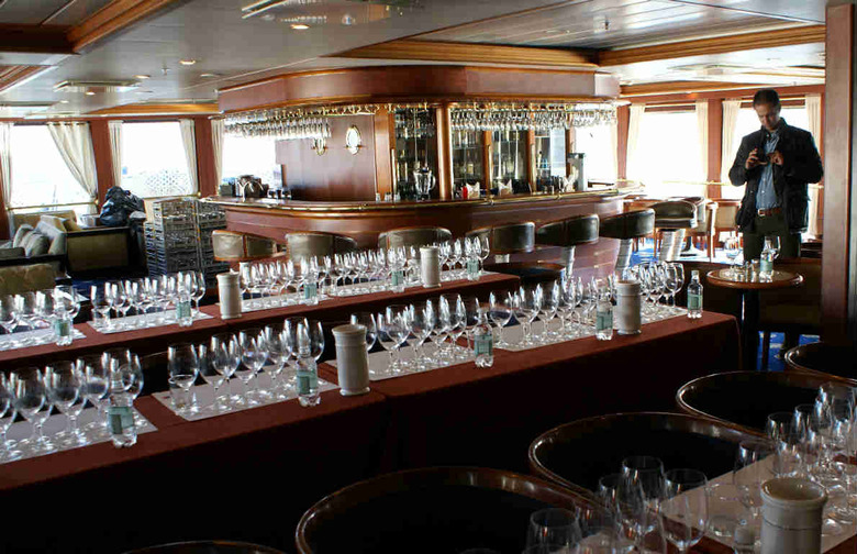 Onboard, the ship's bar had been turned into a classroom for the first of six tastings to be conducted starting this evening and continuing over the next three days. Wines will include red blends, Mediterranean blends, pinots, cabs, and cool-climate whites.