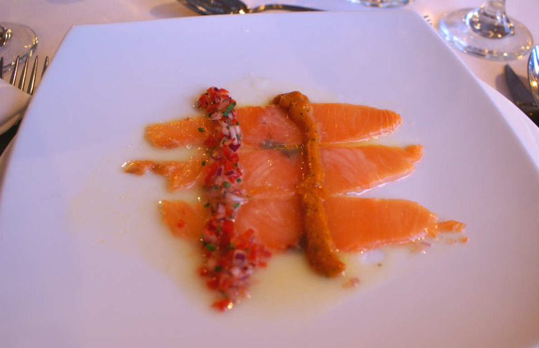 Where there's wine, there must be food. We get the first-night dinner started off with an appetizer of smoked salmon with a vegetable ceviche. Patagonia lamb is also on the menu. Although not gourmet-class food, the Australis' galley prepares a hearty cross-section of Chilean cuisine.