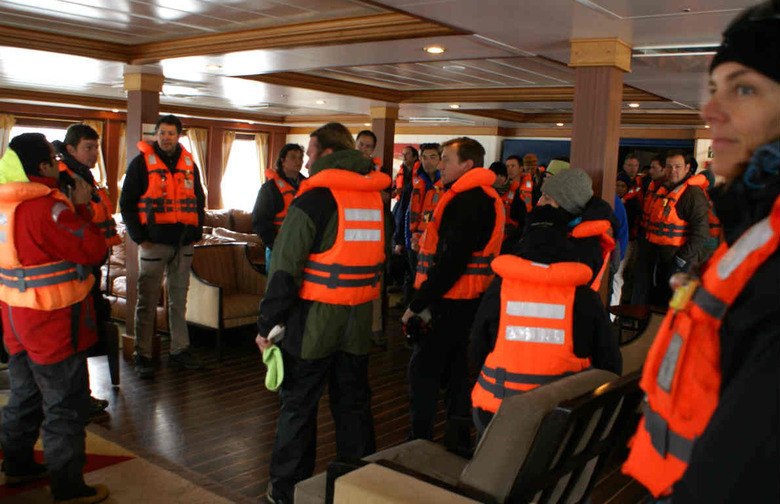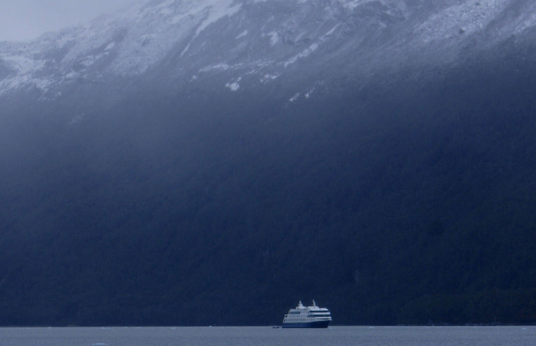 We wake up too early to find the rain is gone — at least temporarily — and with stunning views of mountains awash in sunlight looming just off the ship. But there is also an unusual, nervous bustle among the ship's crew and the Wines of Chile folks. We must check this out.
