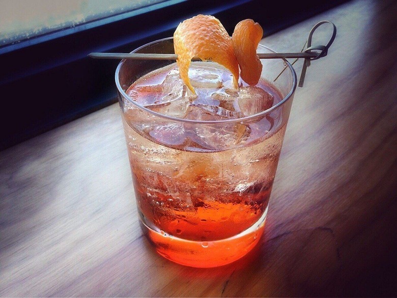 An especially nice neighborhood joint in Silver Lake, Bar Angeles will serve a liquid "breakfast of champions" called Breakfast Negroni for Negroni Week. Concocted by bar director Alex Barbatsis, the Breakfast Negroni is comprised of Campari, Carpano Antica sweet vermouth, and apricot liqueur, topped with sparkling wine. "I love Negronis, and I wanted something similar on the brunch menu but lighter," says Barbatsis, who originally thought of mixing Negroni Spagliatos but wanted to make something fruitier. "My inspiration came from the different jams I liked on my toast in the morning with my coffee, and apricot jam stuck out to me. Using apricot liqueur added a nice round texture and brightness." You're on your own though, if you want this one during breakfast hours, as Bar Angeles is only open evenings. Barbatsis recommends that guests pair this eye-opener with pizza and pasta from executive chef and partner Joey Booterbaugh.