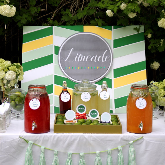 We love the idea of turning a self-serve drink station into a fun and funky décor opportunity. Add to the set up by place fresh limes and lemons in fruit bowls around the tables for a fun and functional look!