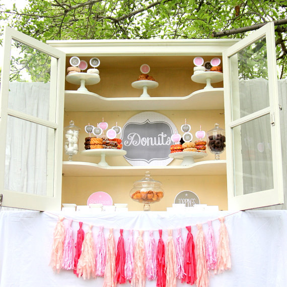 First off: um, YUM. Second, this is a fabulous food bar that is not only great for birthdays, but weddings and bridal showers too! Isn't this a sweet idea?