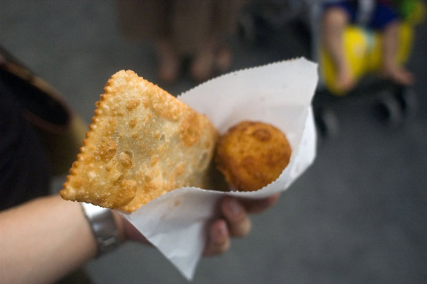 Served with a sweet or savory filling, these fried stall snacks are a late-night staple in Brazil. Said to have originated as a South American adaptation of fried wontons introduced by Japanese immigrants, the present-day pastel can include anything from ground meat and mozzarella or heart of palm and cream cheese, to jam, chocolate, or banana for those with a sweeter tooth.