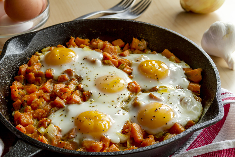 You don't really need a recipe to make frittatas, which is one of the reasons they make a fantastic lazy dinner with a side salad. Once you've nailed down the base of eggs, milk (or heavy cream) and salt and pepper, you can add just about anything you'd like before popping it in the oven. If you're trying to get more veggies into your diet, frittatas are a great way to sneak some greens in along with a few other unexpected ingredients.