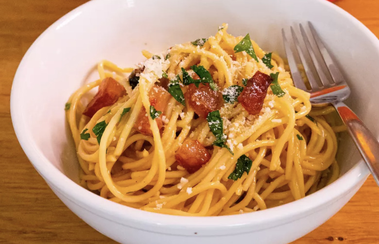 Great Italian food can be less than an hour away. The best part of this quick dish is that you probably already have everything on hand. It requires only six ingredients, including eggs and parmesan cheese, which coat the spaghetti in a luxurious and simple sauce.