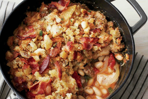 The celebrated cassoulet of France inspired this stick-to-your-ribs dish, which uses chicken breast instead of the traditional duck or goose. Our big batch of this recipe from the One Pot cookbook is great for a party. This casserole is easy to make in advance, just wait to sprinkle the breadcrumbs and reserved bacon on top until the day you plan to serve it.