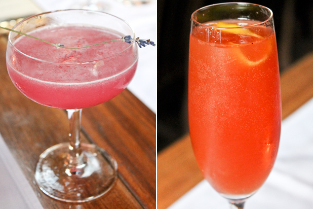On the left is the Lavender Gimlet made with Spring 44 gin, crème yvette, lavender cordial, and fresh lime, which isn't part of the tasting menu but worth getting. On the right is the drink that comes with the first course, the Sherried Red Eye — Kelso pilsner, lemon, tomato, and fino sherry.