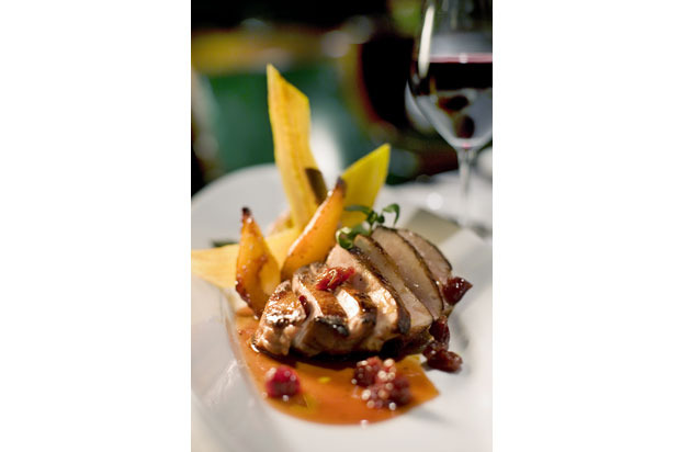 If dining creek-side in a 100-year-old log cabin amid antique hunting collectables inspires rustic dinner choices, you'll find yourself with the right menu in your hands at the Rainbow Lodge in Houston. Buffalo short ribs, grilled elk chop with autumn vegetables (pictured), and Nilgai antelope back strap are standards on the menu, alongside the mixed grill of venison medallions, Texas lamb T-bone, and Lockhart quail.