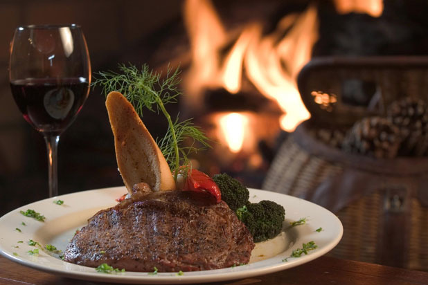 This Northwest-themed rustic lodge in Greenville, S.C., is nationally recognized for its wild game cuisine. Locals pack the place for wild game sausages cooked on a hickory fire, elk tenderloin, and buffalo ribeye (left) and flank steak. Emu, bear, and pheasant make frequent appearances as nightly specials.