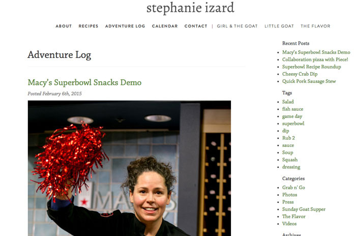 Girl & the Goat's Stephanie Izard maintains a fun little blog that's mostly dedicated to recapping her culinary exploits, like hosting a Super Bowl cooking demo at Macy's, hosting a Top Chef Duels party, and visiting a local farm.