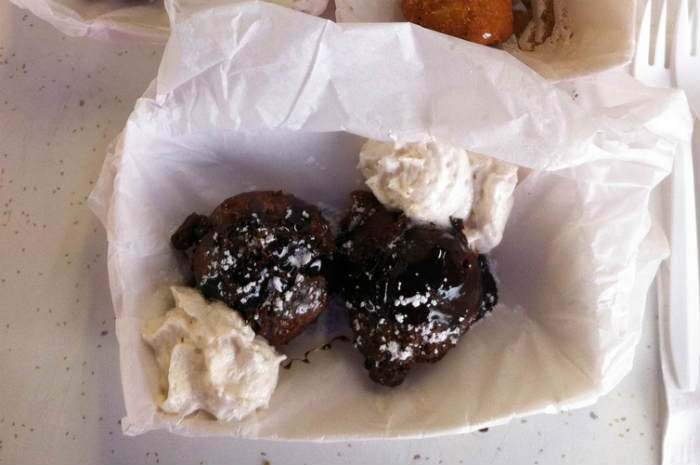 Found at — where else? — the Texas State Fair, this was also reportedly quite delicious. Salsa is mixed with corn masa, rolled into a ball, then rolled in crushed tortilla chips and deep-fried. Served with queso dip on the side, of course.