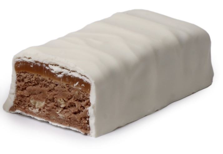 One of the few unintentionally vegan candy bars on the market, this long orange stick is produced by the Atkinson Candy Company and has a filling of peanut butter, sugar, and corn syrup and a dusting of ground coconut. When it was introduced in the 1950s, there was a chicken on the wrapper, but it was removed in recent years because some consumers began thinking that it was chicken-flavored.