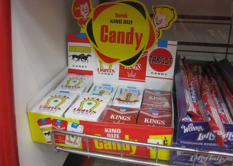These were by and large removed from the shelves at convenience stores and other non-specialty candy shops over the past 15 or so years due to the fact that they ostensibly glorify smoking for children. But this '50s relic is still available online; some of them even let out a plume of "smoke" when you blow into them.