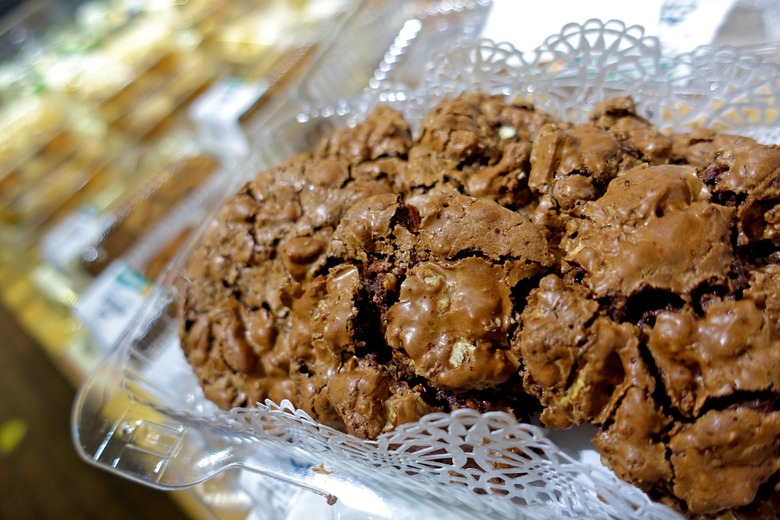 The first smell that hits you when you walk into the store is the insane (and I'm not exaggerating) smell of fresh baked goods. It's a smack to the nostrils of warm bread, beautiful cakes, and piping hot muffins. They've got a plethora of different varieties of loaves straight out of the oven, being bagged right in front of you, as well as countless pastries and cookies. I watched them fry apple cider donuts, pop rice cakes, and even roll out tortillas — all in the store. Before my eyes they were bagged and made ready for me to take to the register. They've got rainbow bagels, protein bread, and a ton of different cakes. But Stew's favorite? He's slightly obsessed with the Incredible Chewy Chocolate Pecan Cookies. They're crispy on the outside and chewy on the inside, with a beautifully rich chocolate center — and you won't just be able to eat one, let me tell you now.