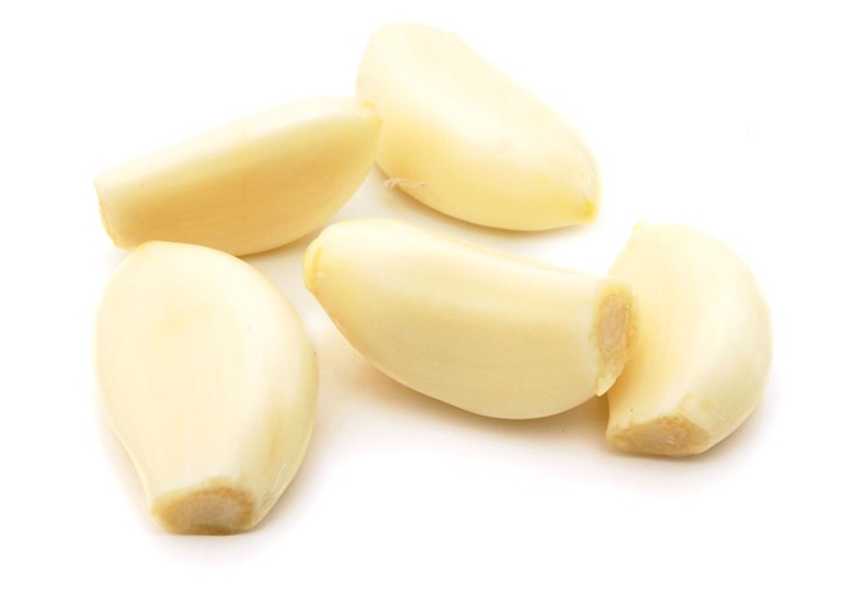 In order to avoid too much bitterness in the raw garlic, a good trick is to remove the inner "core" of the garlic clove, which can take on a slightly green tint.