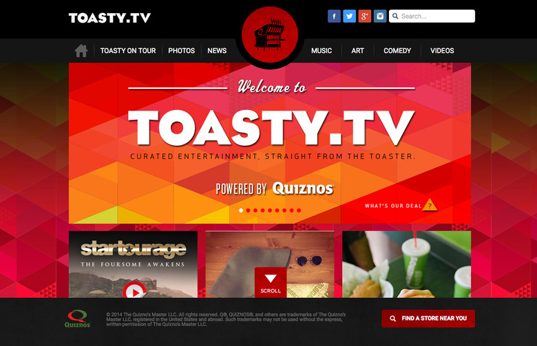For some reason, the chain runs Toasty.tv, which it describes as "the latest in music, film, art, and entertainment — all with that special Quiznos awesomesauce." Spoof videos include Startourage: The Foursome Awakens and House of Thrones, and the website is also the home base of their live music initiative, Toasty on Tour.