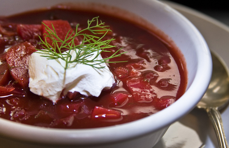 In Poland, Christmas Eve is a meat-free day, and 12 dishes are usually served for dinner, representing the 12 apostles. These dishes usually include barszcz (borscht) with uszka (filled dumplings), carp with potato salad, pickled herring, rollmops, pierogi, mushroom soup, cabbage rolls, potato dumplings, and salads.