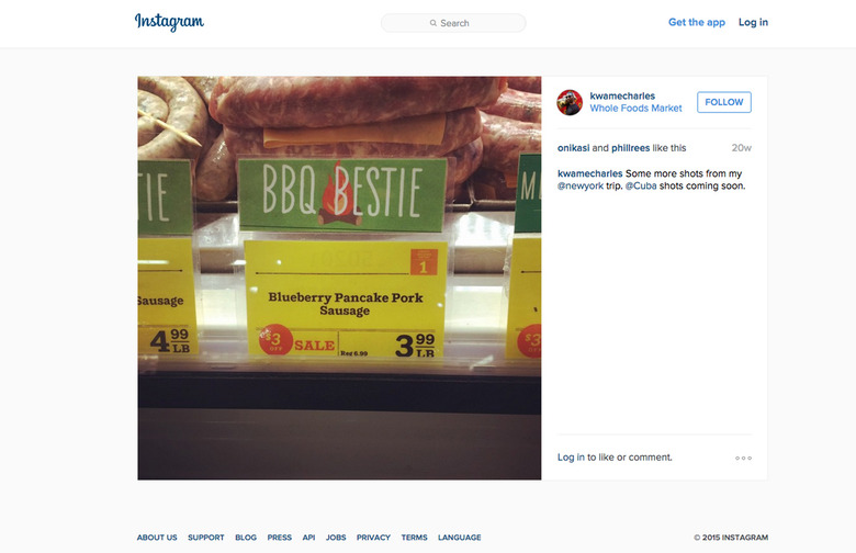 We're going to guess that these sausages contain blueberries and maple syrup (and probably not much in the way of pancakes), but the name alone stopped us dead in our tracks.