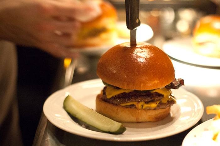 Relative newcomer Fritzl's was established two years ago, just a few stops away on the L subway line ,by Dan Ross-Leutwyler, who has worked at awesome food institutions like The Breslin and Roberta's. The 19-seat eatery focuses on simple and delicious fare, with as many ingredients as possible sourced from local purveyors. Their burger was named the very best in New York by The Village Voice in 2013, and it's pretty easy to see why:  The patty is a mix of beef cheek and fatty beef chuck that's been house-ground, garnished with chopped pickles and onions sandwiched within a sesame-seeded bun. We suggest adding Cheddar cheese, as they don't skimp on quantity, and the sight of the cheese-blanketed burger heading your way is simultaneously comforting and exhilarating.