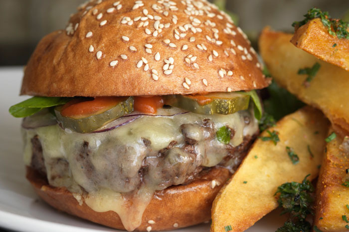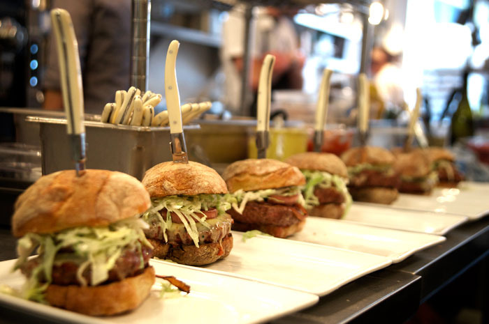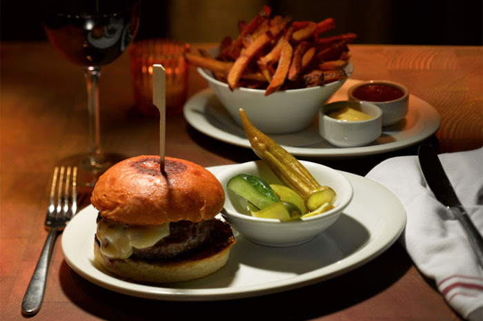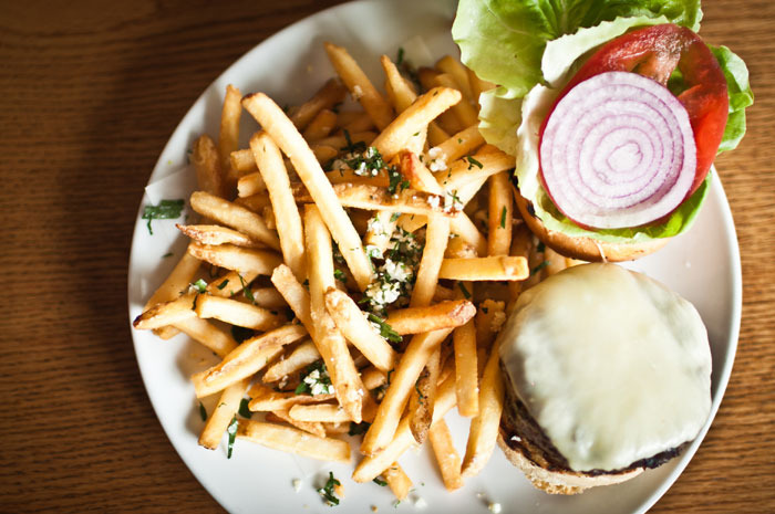 The lunch-only grass-fed burger at this San Francisco classic is ground in-house, medium-lean, and comes on grilled rosemary focaccia slathered with aïoli. Beecher's Flagship or Bayley Hazen blue are available options, as are grilled onions or sliced heirloom tomatoes. There's very much of an only-in-Northern-California feel about the whole arrangement, which is just fine with us.