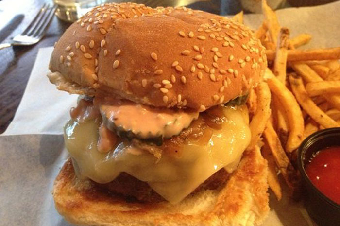Thurman Café has been serving all-American fare since 1942 to Columbus' German Town neighborhood, and it's a great place for locals to stop in or take out classics such as wings, pizza, fries, and of course, burgers. If it's your first time there, make sure you order The Thurmanator, which comprises not one but two twelve-ounce burger patties, American cheese, bacon, banana peppers, ham, lettuce, mayo, Mozzarella cheese, sautéed mushrooms and onions, and tomato, all served on a bun with fries on the side and a pickle spear. We wish you luck on your quest to vanquish this monster.