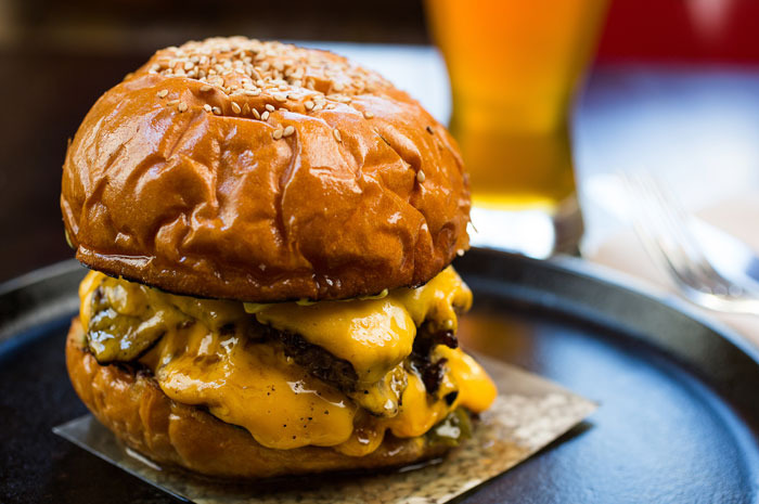 Italian gastropub Alla Spina has only been open for three years, but has already gained a loyal fan base that includes Burgamo diehards looking to wrap their mouths around this high-stacked, double-pattied Philly burger favorite. The double cheeseburger is made with Cheddar, LaFrieda beef, lettuce, onion, pickles, and a special sauce, all sandwiched on a house-made, sesame-seeded potato bun.