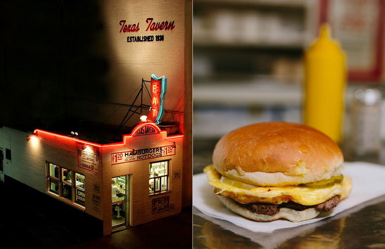 Texas Tavern was opened on Friday, February 13, 1930, by Issac N. "Nick" Bullington, a scout for the Ringling Brothers circus who traveled the country to book the act a year in advance. Today, his great-great-grandson Matt Bullington owns and operates the restaurant, which continues to bring in flocks of hungry locals for the freshly ground beef burgers. The item to order here is the Cheesy Western, but just say "Cheesy," as the staff does, or "Cheesy with" if you want onions (which, of course, you do). It comes topped with a fried egg, melted cheese, pickles, and sweet relish on a plain bun.