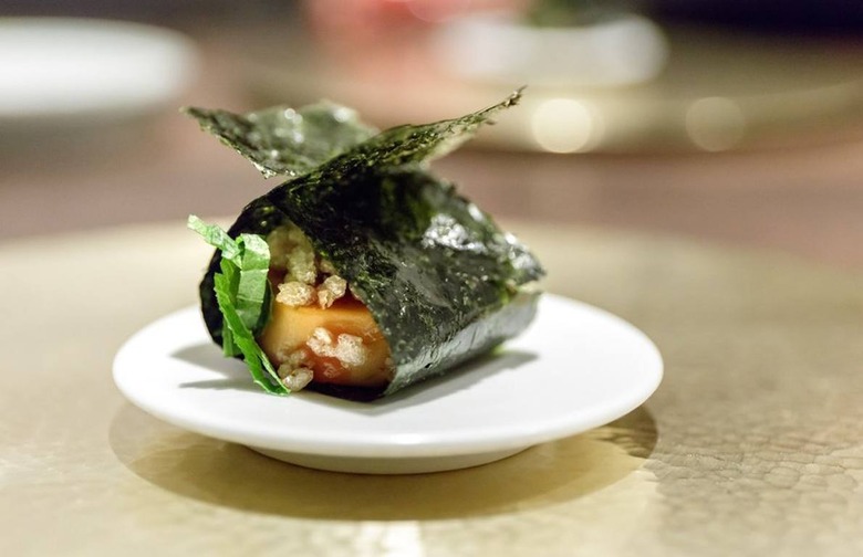 Former New York Times critic Sam Sifton took Masa down to three stars from the four given to it by his predecessor, apparently in part because they made him wait outside when he showed up early, didn't explain all the dishes, and didn't pay him much attention after dessert. That doesn't seem to have discouraged the high-rollers who crowd the sushi bar or — losing some of the immediacy of the experience — sit at one of the small tables. Masa's toro-stuffed maki rolls have been known to inspire lip-twitching and eye-rolling, and the toro with beluga caviar seems almost worth the price of admission. And what a price that is: The swanky Time Warner Center setting and elaborate omakase-only menu is accompanied by a high bar for entry. At an astonishing $595 per person before beverages (service included; they did away with tipping last year), you're looking at a bill that can easily total more than $1,500 for two.