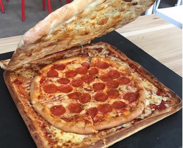 When a crazy pizza becomes a pop culture phenomenon, you know you're onto something. Created by the folks behind Vinnie's Pizza in Williamsburg, Brooklyn, this pizza is hilariously brilliant: It's a pizza inside its own edible box. And if this beast is too much food, Vinnie's also serves a slice inside its own edible box. Amazing.