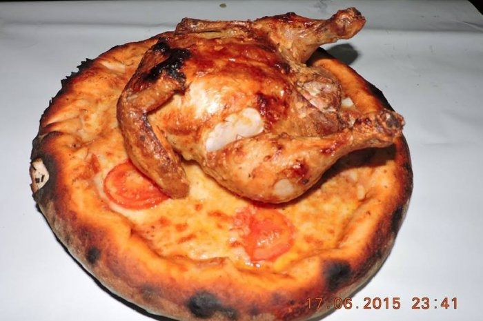Some pizzeria in Brazil decided to top its pizza with the craziest things it could think of, including car tires and an entire case of beer. But we're partial to this one, topped with an entire roast chicken. It's just so silly.
