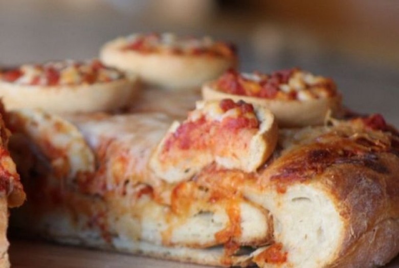 The Vulgar Chef turns out some wild creations (his ramen- and bacon-topped sushi roll was certainly notable), but this might be his wildest of all: It's a pizza, stuffed inside another pizza, all topped with Bagel Bites. "I wanted to create something a little more fundamental this week," the chef wrote. "I'm not really sure what fundamental means, but a pizza stuffed with a pizza with pizzas on top seems fundamental to me."