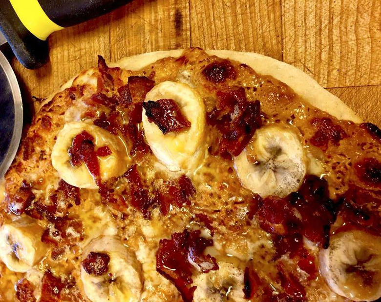 Any pizzeria can take a pizza crust, add on some boxed macaroni and cheese, and bake it. But this acclaimed Alaska pizza joint has really taken the mac and cheese pizza to the extreme: The crust is brushed with garlic and olive oil and topped with mozzarella and provolone. Then it gets a layer of homemade macaroni and cheese, made with elbow macaroni, American, and Cheddar cheeses. This then gets topped with more cheese as well as slices of spicy sausage before being baked.