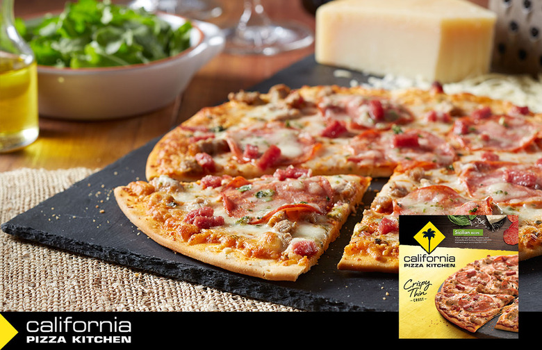 CPK's frozen pizzas are a common sight in the supermarket freezer section, in varieties including white, barbecue chicken, veggie, and Sicilian. These were originally licensed by Kraft, but have been produced by Nestlé since 2010.